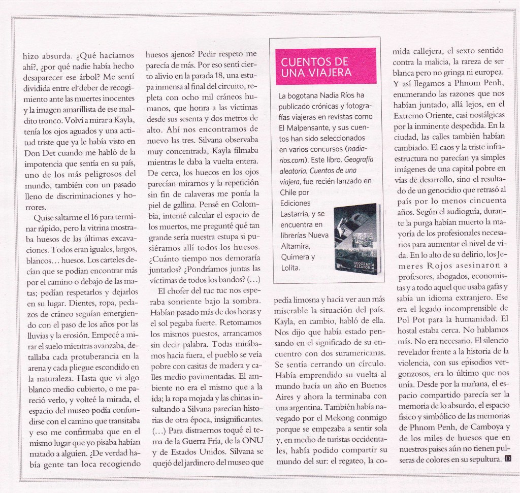 Relato de viaje del libro Geografía aleatoria, publicado en el periódico El Mercurio, revista del domingo, 22 de septiembre del 2019.
