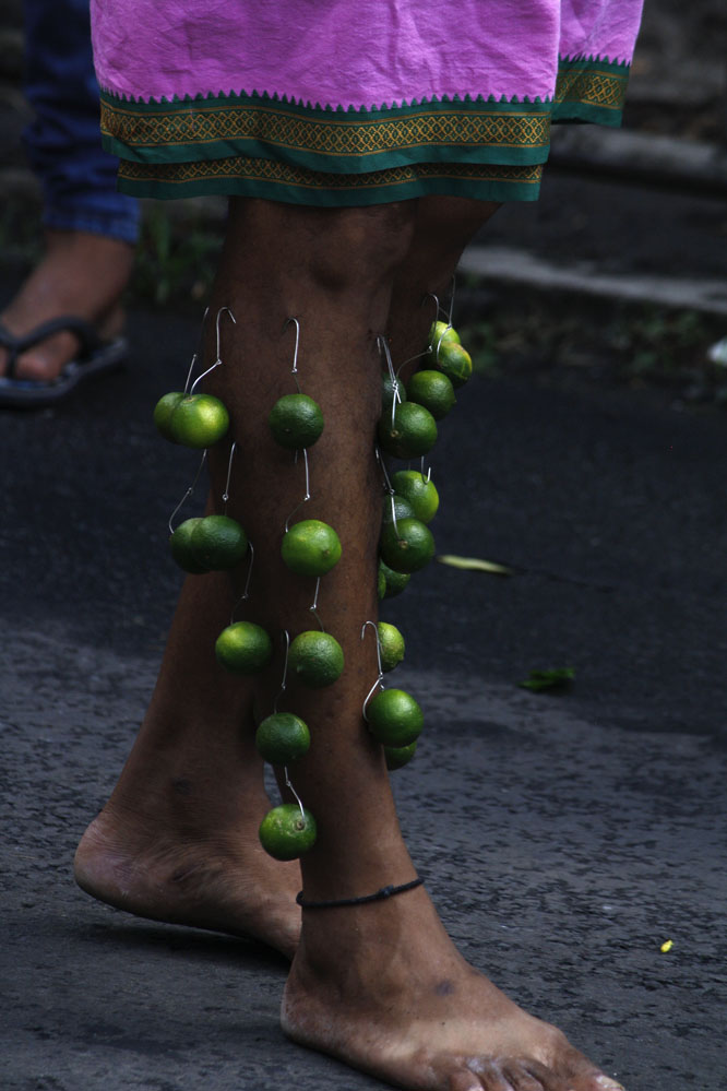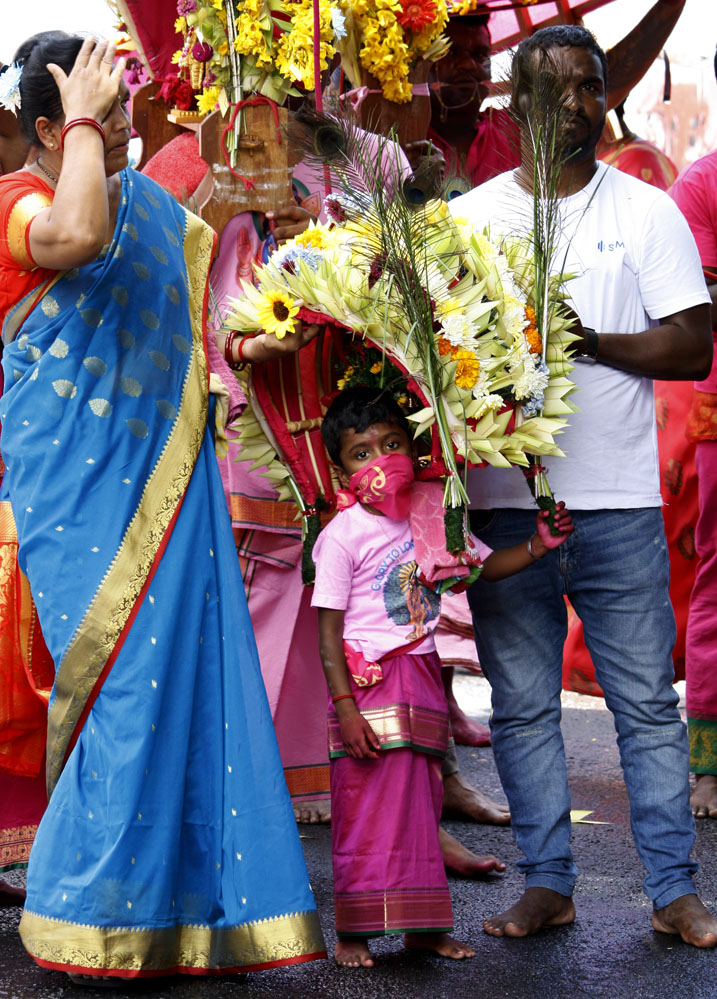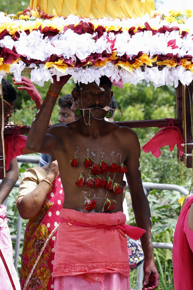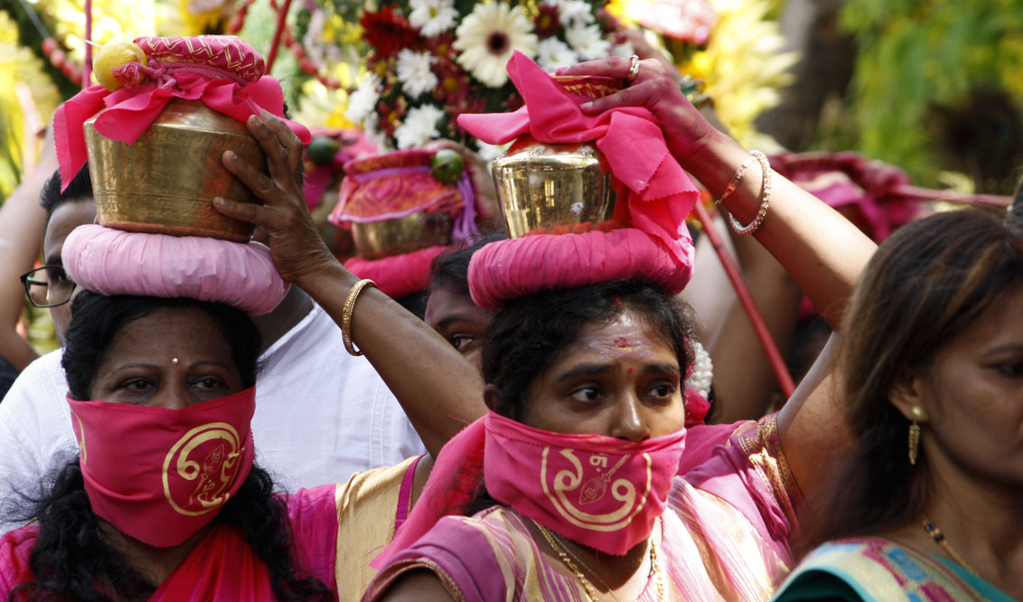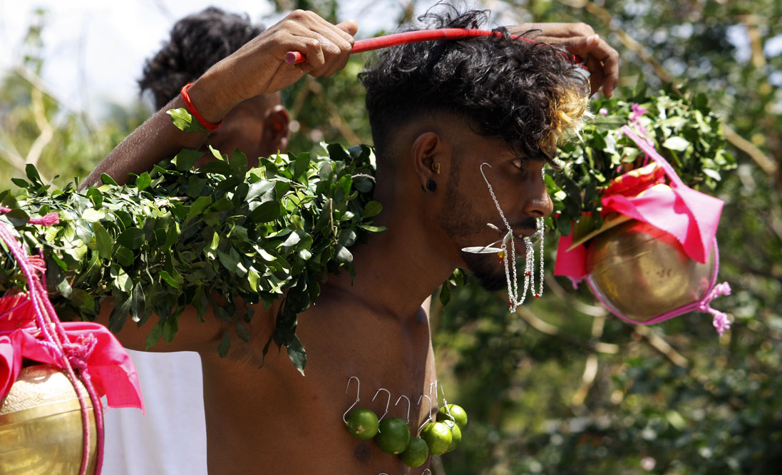 En Isla Mauricio, la comunidad tamil se reúne por localidades. Los más devotos, en agradecimiento, en búsqueda de fuerza y determinación o simplemente para renovar su fe, peregrinan descalzos bajo el sol ardiente, cargando una jarra de leche o un arco de madera (cavadee) que han decorado minuciosamente los días anteriores mientras han ido purificando sus cuerpos con una estricta dieta vegetariana.